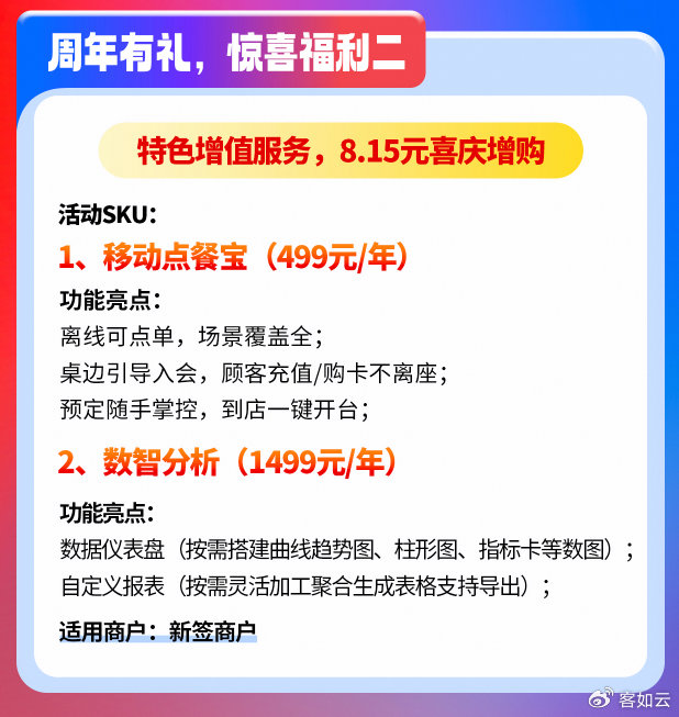 2. 周年有禮,驚喜福利二:點餐寶和數智分析特色增值服務,2025年8月15日喜慶增購;