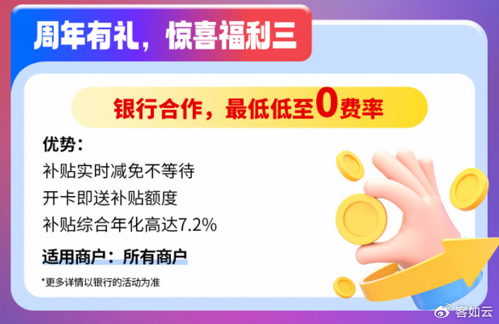 3. 周年有禮,驚喜福利三:與銀行合作,享受低費率優惠;